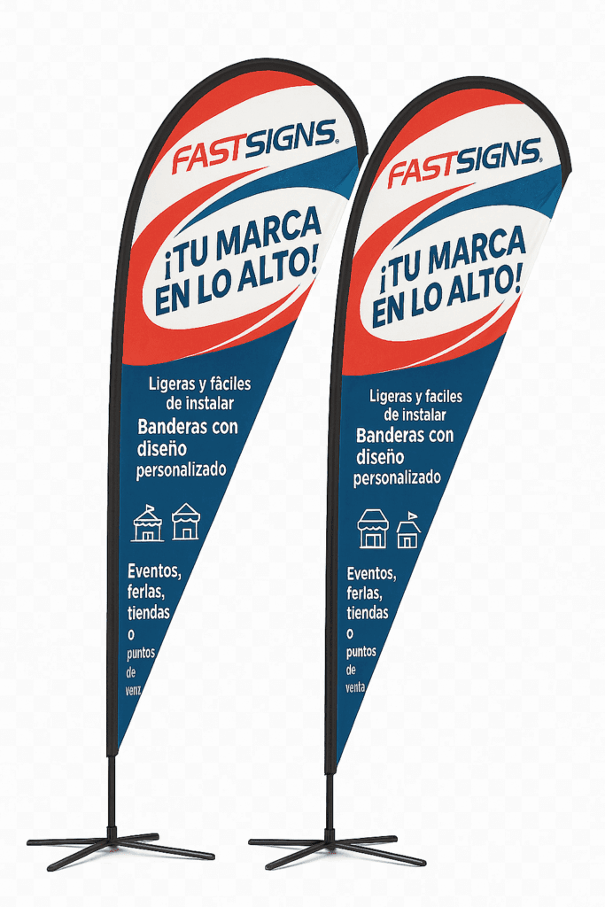 ¡Tu Marca en lo Alto! Ligeras y fáciles de instalar, banderas con diseño personalizado, perfectas para eventos, ferias, tiendas o puntos de venta, las banderas publicitarias garantizan un alto impacto visual.
