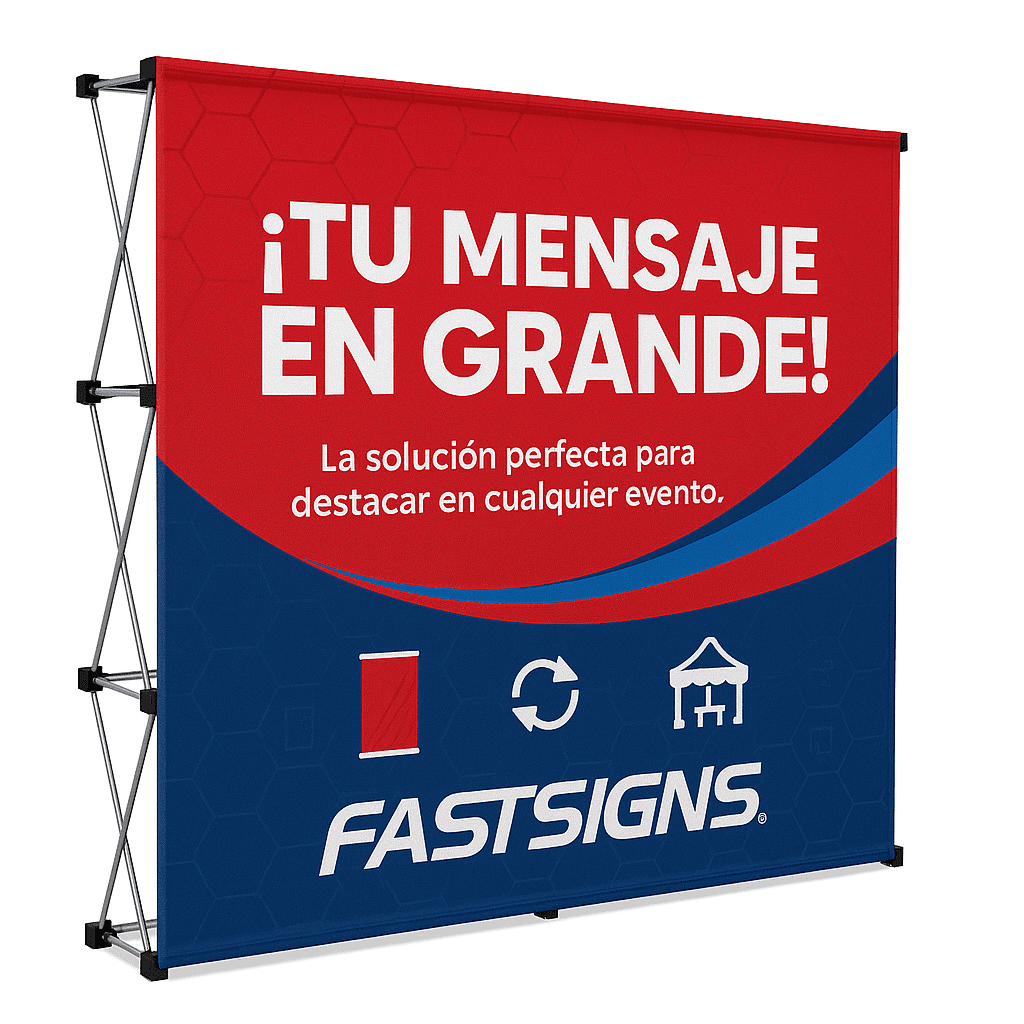 ¡Tu Mensaje en Grande! la solución perfecta para destacar en cualquier evento. Su estructura ligera y modular se despliega en segundos, creando un imponente mural gráfico.